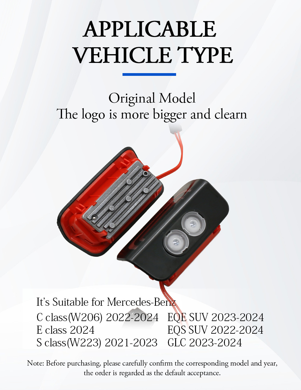 Guaranteed Compatibility: Our projectors are engineered to seamlessly fit a wide range of popular models including MERCEDES-BENZ C/E/EQS/EQC/SUVGLC. (Please always double-check your model and year on Compatibility Tab before ordering).